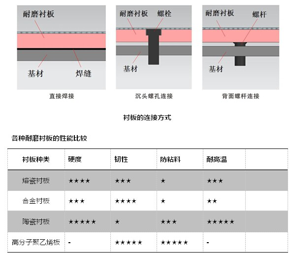 熔瓷襯板所有產品均可焊接,現場切割比較困難,不建議切割!安裝方式可采用: ①直接焊接②沉孔預制
