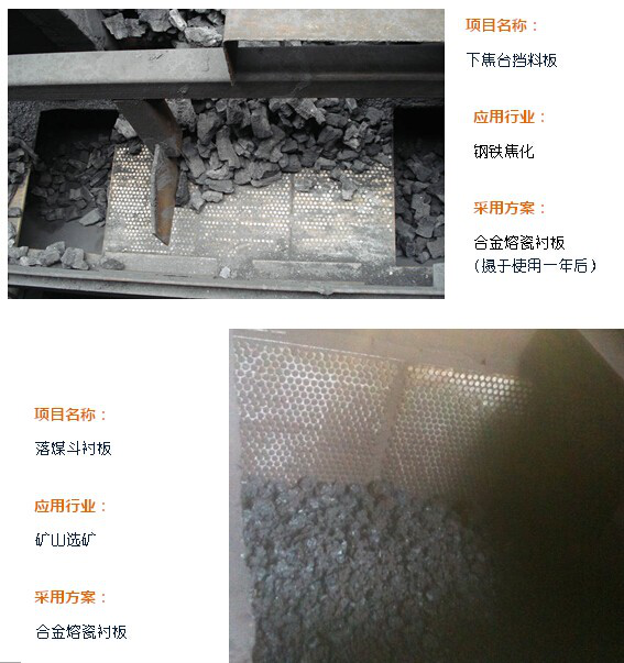 各種礦料破碎、篩分及輸送等系統所涉及到的各種防磨部位(如轉接塔、轉接斗、落料斗、溜管、溜槽、排渣溝等)